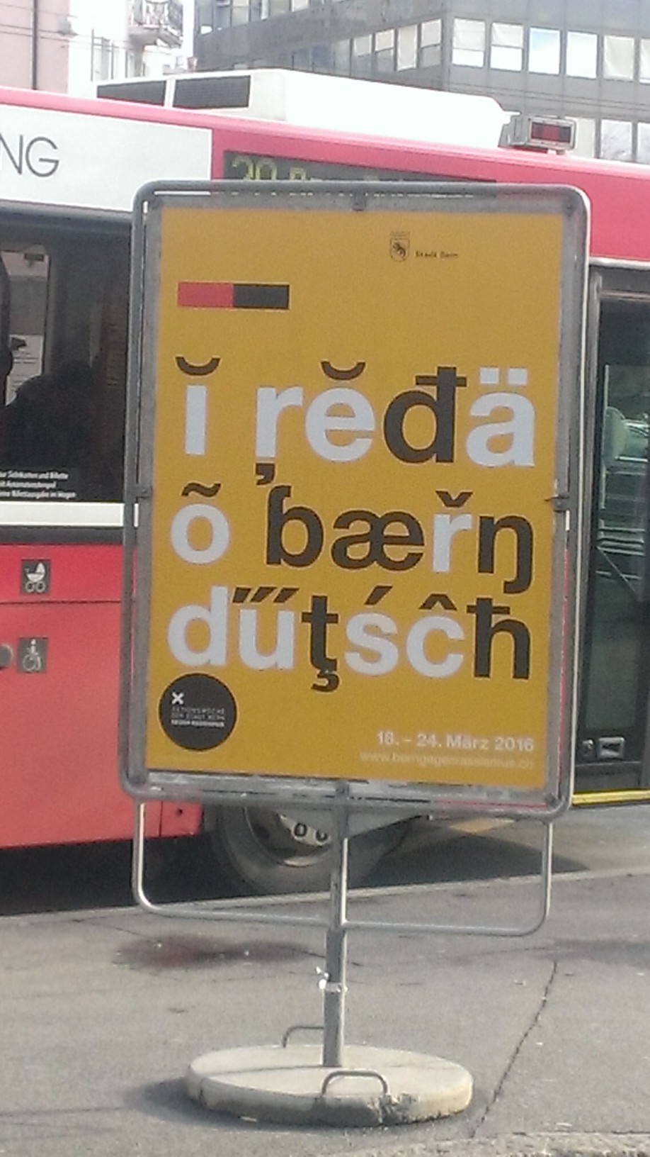 Berno organizuje właśnie tydzień przeciwko rasizmowi. Pięknie, chwali im się za to. Całe miasto w plakatach w niezrozumiałym berneńskim dutczu dla normalnego człeka, a co dopiero dla imigranta. Fajne torebki rozdawali na zakupy, też się na jedną załapałam i teraz dumna paraduję po ulicach z napisem Bern gegen rasismus.